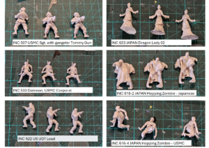 This drop has lots of the characters, heavies and some real bad mothers in Incursion Pacific Theater, Capt Jim! Blazer and Gangsta Sarge, D.A.W.G., the JAPAN side gets more zombies, Col. Rikugun Taisa (head of the JAPANESE unit studying Oni’s), O.N.I.’s are finally here and a pilot… hmmm what could he be a pilot of… oh and yes Dragon Ladies!!! Someone needs to be summoning the Oni… Check out the collages and the lists follows!!!