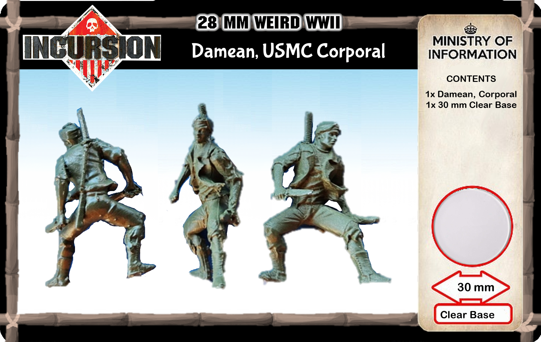 Survivors on Iwo Jima collaborate to stay alive, perpetuating the myth of the Obake of Iwo Jima or the Ghost, Contains 1 unpainted model and 30 mm clear plastic base.
