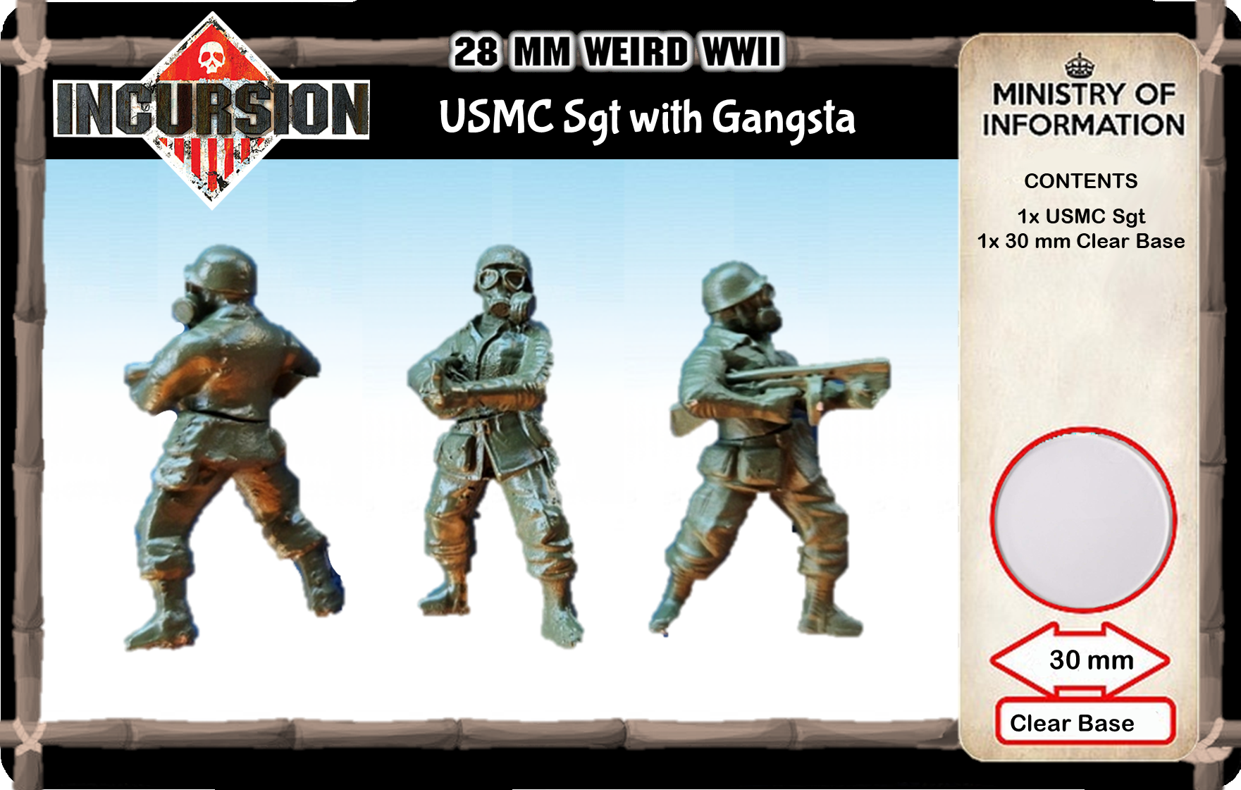 Sarge is in charge, when you need to lay down some suppressing fire or get the troops to take that hill, its Sarge ho you call. Contains 1 unpainted model and 30 mm clear plastic base.